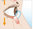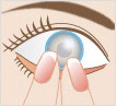 ![]() | 1.拉開眼睛 仔細(xì)洗凈雙手后,眼睛微微向上看著鏡子,用左手食指拉開上眼瞼,右手中指拉開下眼瞼。 | ![]() | 2.取出隱形眼鏡 右手拇指與食指指腹柔軟的部位,輕輕按住隱形眼鏡的下緣兩側(cè),使鏡片拱起來后,輕夾起鏡片并慢慢取出。 |