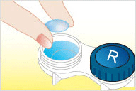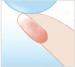 ![]() | 1.區(qū)分隱形眼鏡的正反面 將隱形眼鏡輕放在食指指腹上,如果成“碗”裝,則為正面,如果成“碟”狀,則為反面。如果分不清楚,可直接佩戴,如果戴上后不舒服,那就戴反了,取下后翻過來帶即可。 | ![]() | 2.將隱形眼鏡放在指腹上 佩戴前請(qǐng)先用清水仔細(xì)清潔您的雙手,輕托住隱形眼鏡。 |