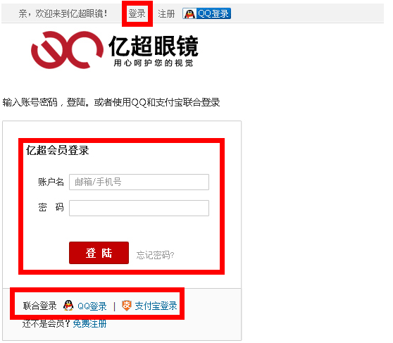 點(diǎn)擊頂部條上的登陸按鈕