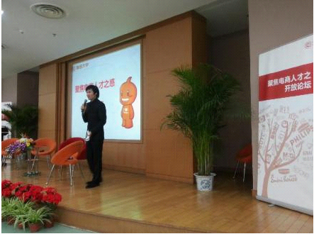 昨天晚上在浙江大學(xué)紫金港校區(qū)國際會議中心召開了主體為關(guān)于電商人才之惑的開放性論壇大會,大會由淘寶大學(xué)和浙江大學(xué)聯(lián)合主辦,參加的人員有浙江大學(xué)領(lǐng)導(dǎo)、阿里巴巴高層代表、淘寶大學(xué)校園代表、優(yōu)秀網(wǎng)商代表,傳奇人物芳草集CEO、utc行家資深職業(yè)經(jīng)理人老曹、淘寶大學(xué)45期MBA網(wǎng)商代表、浙大學(xué)生近200名,億超眼鏡人力資源經(jīng)理作為淘寶大學(xué)45期MBA代表參加了此次會議。