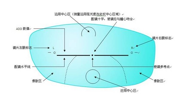 當(dāng)看近距離目標(biāo)或閱讀時(shí),人的眼球習(xí)慣內(nèi)下轉(zhuǎn),這樣視線正好從“視近區(qū)”看出,該“視近區(qū)”應(yīng)包含所需老花鏡的度數(shù)。