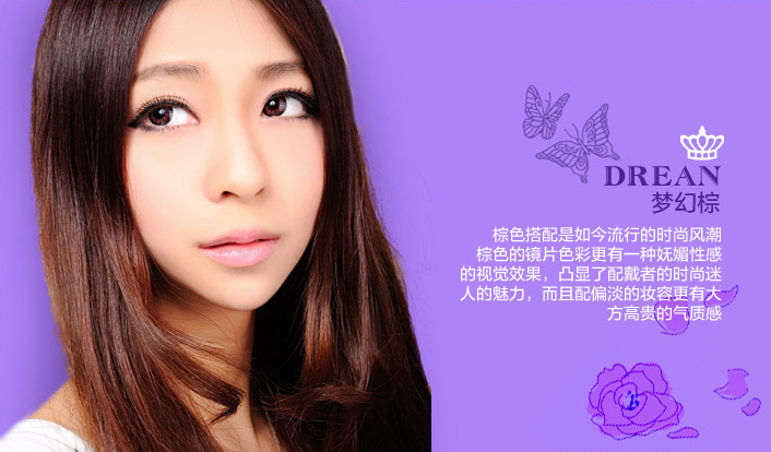 這款隱形眼鏡采用雙層環(huán)狀放大設(shè)計(jì),棕色的蝶影造型,讓你的眼睛散發(fā)迷人光彩。