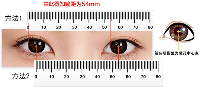 1.你的朋友面對面相距30cm左右,將直尺水平貼靠在你的鼻根部,你的眼睛平視前方,直尺零刻度線對準你右眼瞳孔中心(或右眼瞳孔外緣)至左眼瞳孔中心(或左眼瞳孔內(nèi)緣)。2.重復幾次測量保持準確性,在大多數(shù)情況下,瞳距的尺寸在57mm到67mm之間,常見的是62mm。