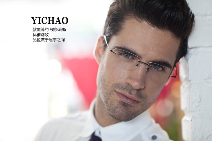 億超 純鈦 無框眼鏡框 黑色 百搭商務(wù)男款 FB6017C4