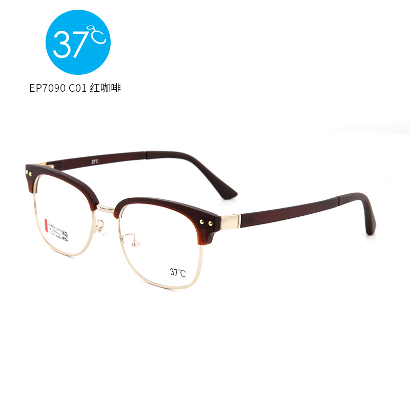 37度 TR90 眼鏡框 紅咖啡色 休閑男女通用 EP7090C01