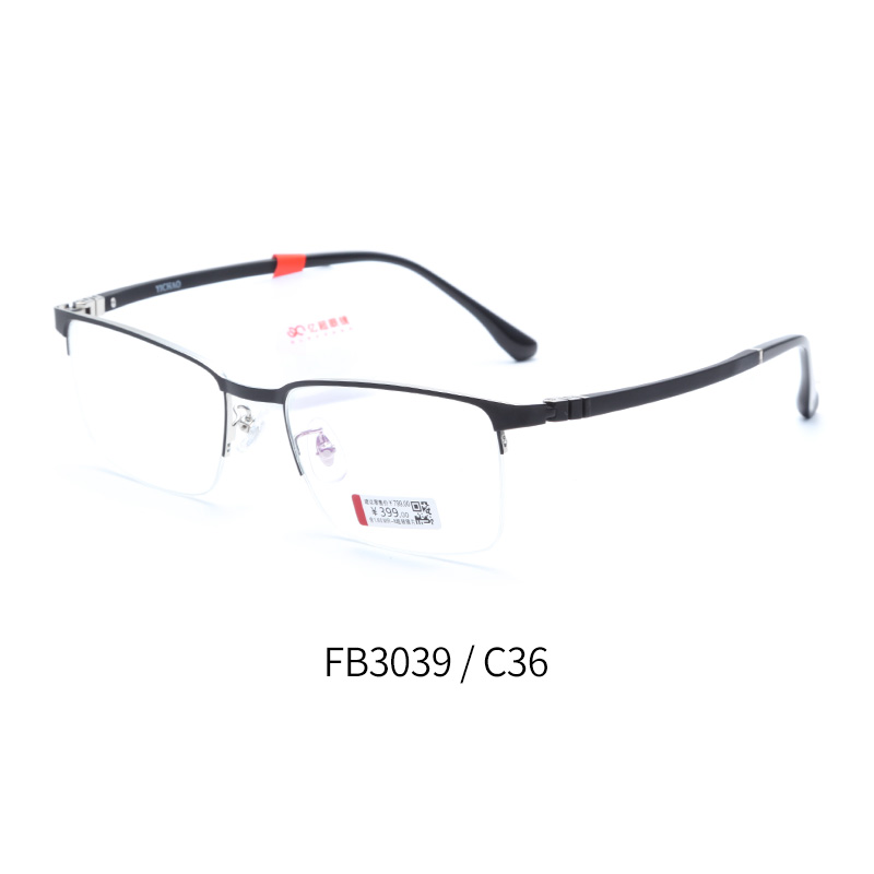 億超合金+鎢碳FB3039半框男士大框眼鏡黑銀