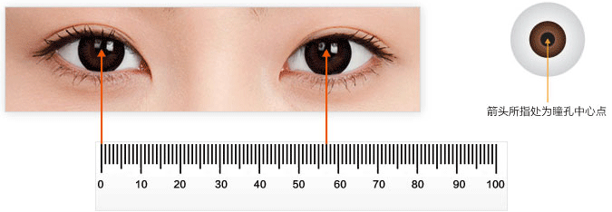 眼球中心點(diǎn)對(duì)應(yīng)的直尺刻度,準(zhǔn)確到毫米,這個(gè)刻度便是瞳距;